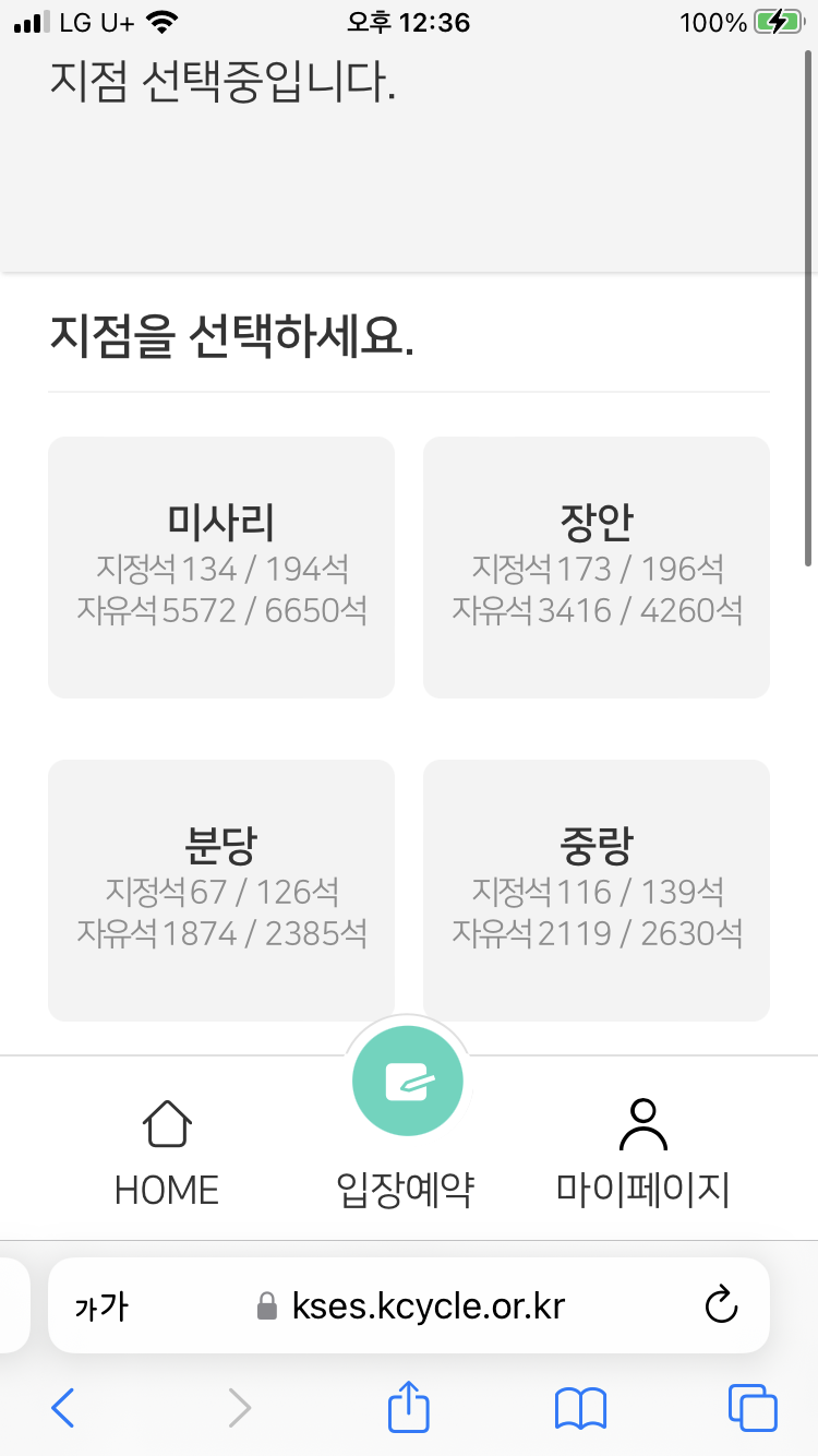 - 예약하기를 누르면 지점, 입장 유형, 예약일을 선택할 수 있다.