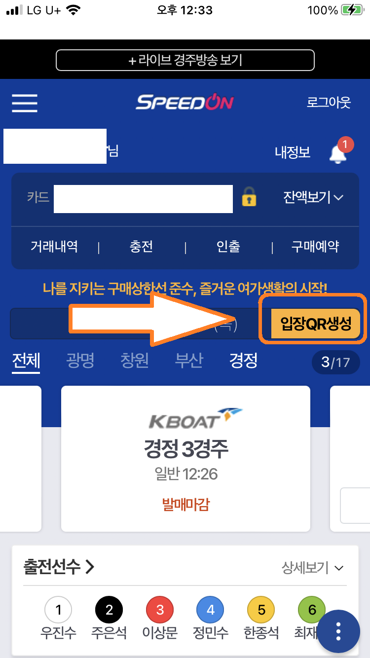 - 금액을 충전했다면, 입장 QR생성을 누른다. 그러면 앱이 아닌 인터넷창으로 오른쪽 사진과 같은 사이트로 넘어가게 되는데, 스피드온 앱의 회원가입한 아이디로 로그인을 한 후에 빠르게 예약하기를 누른다.